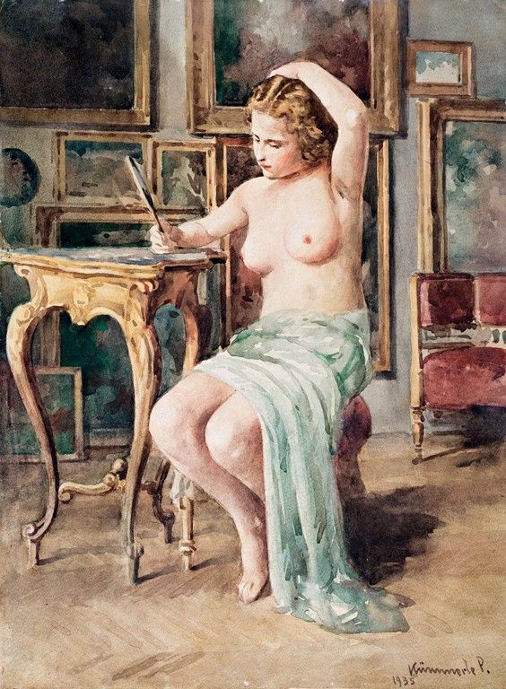 Kümmerle Pál (1873-?): Akt tükörrel, 1935