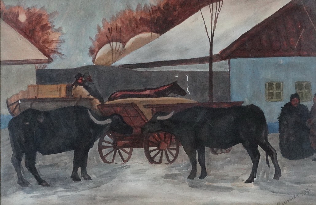 Kurucz D. István (1914 – 1996): Vásári hangulat bivalyokkal, 1957