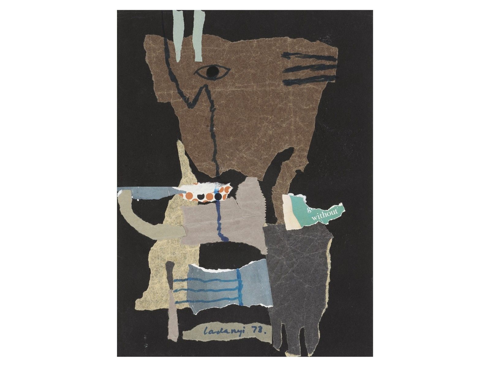 kollázs, papír, 45 × 32,5 cm, jelezve középen lent: Ladányi 78.