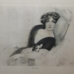 Kikiáltási ár: 3 000 FtMérete 50 cm* 34,5 cm, Technika: szén/papír, a festőnő mappájából, apró szakadás