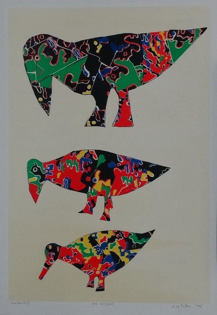 papír, litográfia, szita, jjl, keretben, 100 x 70