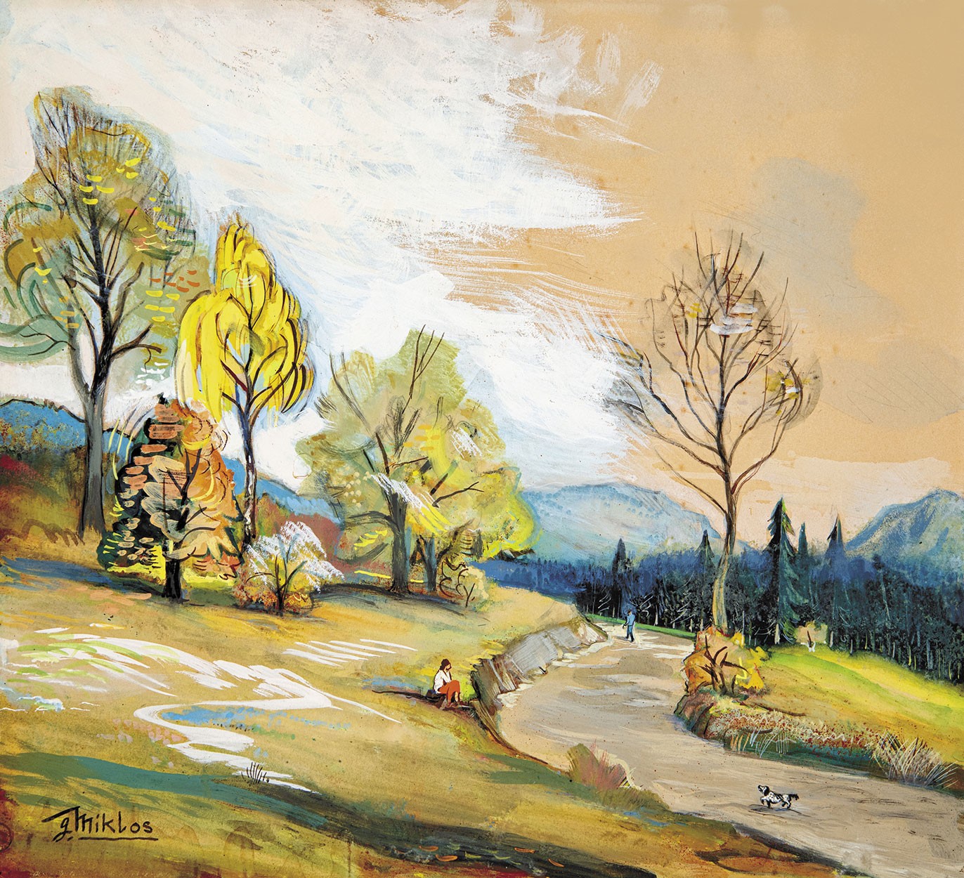 Gouache, akvarell, fedőfehér, papír , 32 x 35 cm, Jelezve balra lent: g Miklós