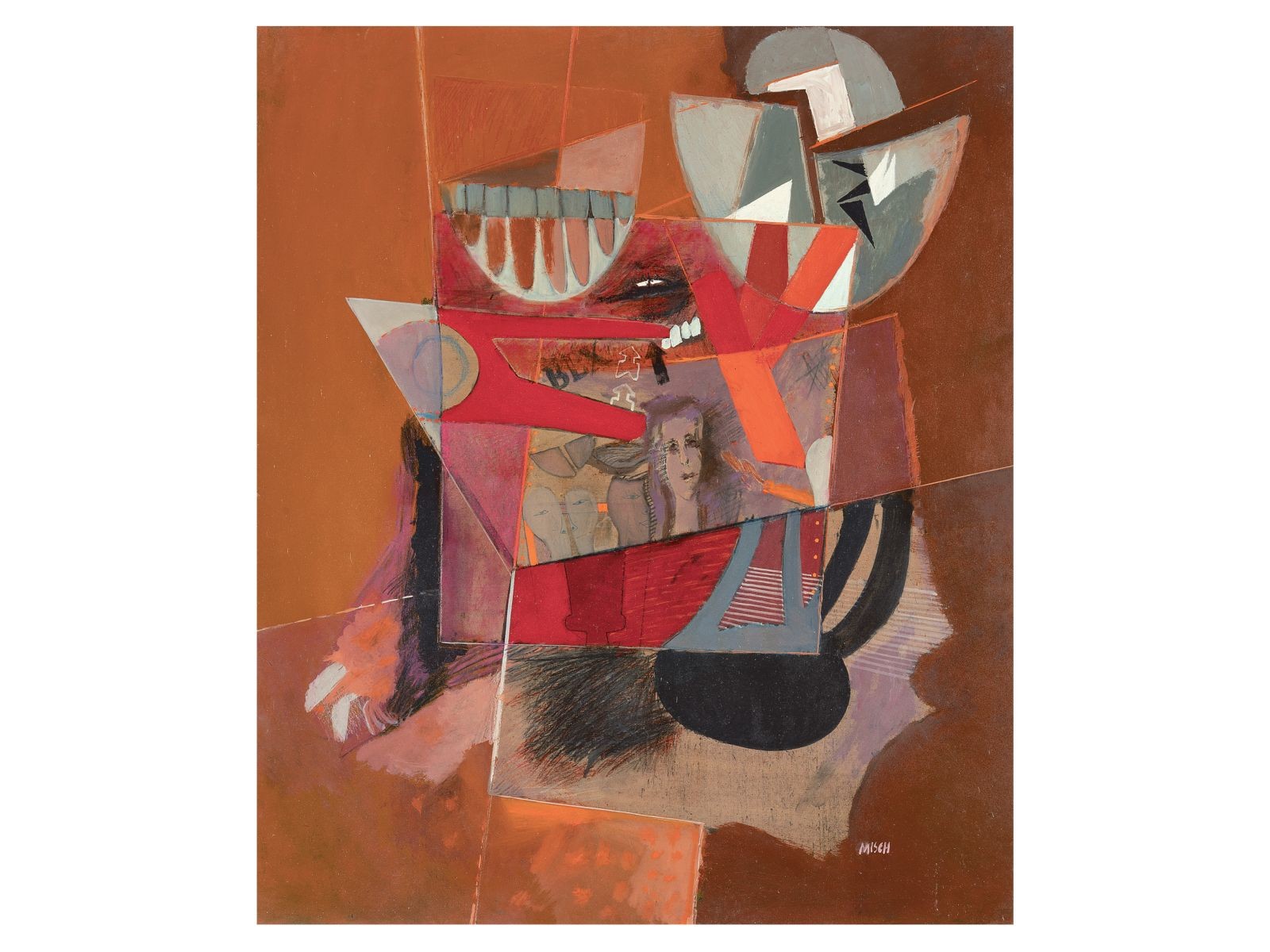 Kikiáltási ár: 48 000 FtKokas Ignác (Vál, 1926 – Vál, 2009) Ady fantázia, 1977 Szeringráfia, papír 610 × 470 mm Jelezve balra lent: Ady fantázia CV/43 Jelezve jobbra lent: Kokas Ignác 1977
