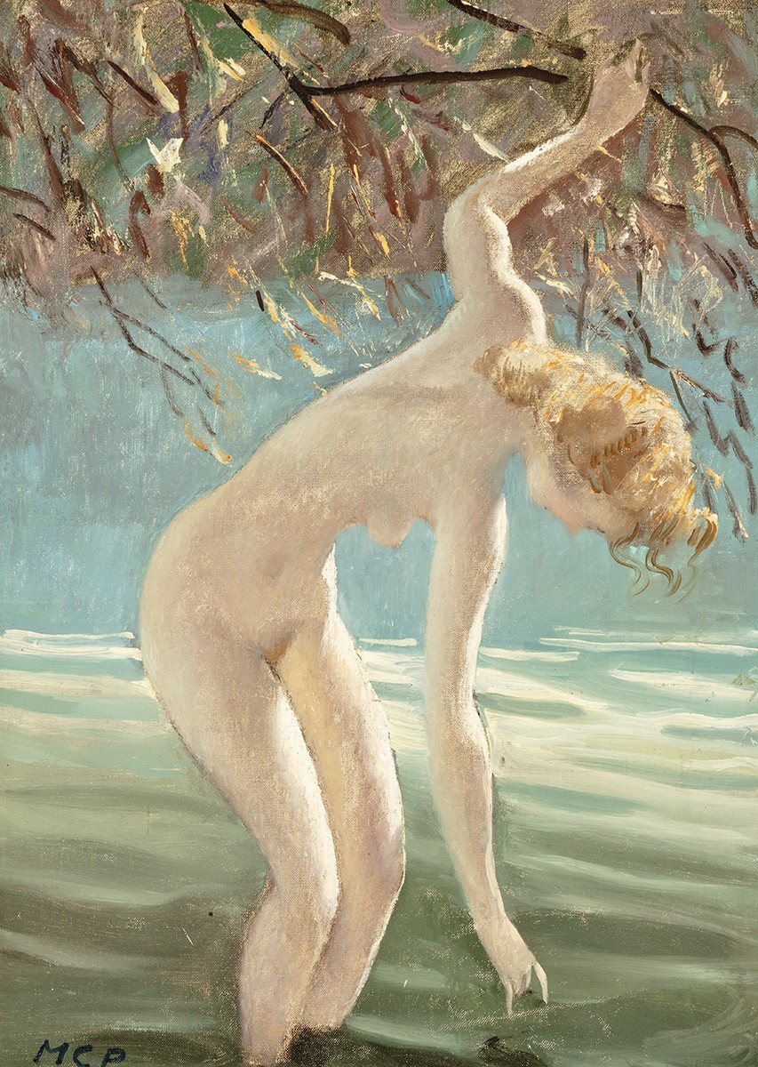 Molnár C. Pál (Battonya, 1894 – Budapest, 1981) Fürdőző Olaj, karton 50 x 36 cm Jelezve balra lent: MCP