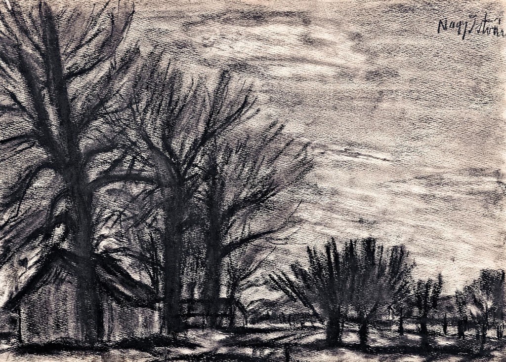 szén, papír, 275*380 mm, j.j.f.: Nagy István
