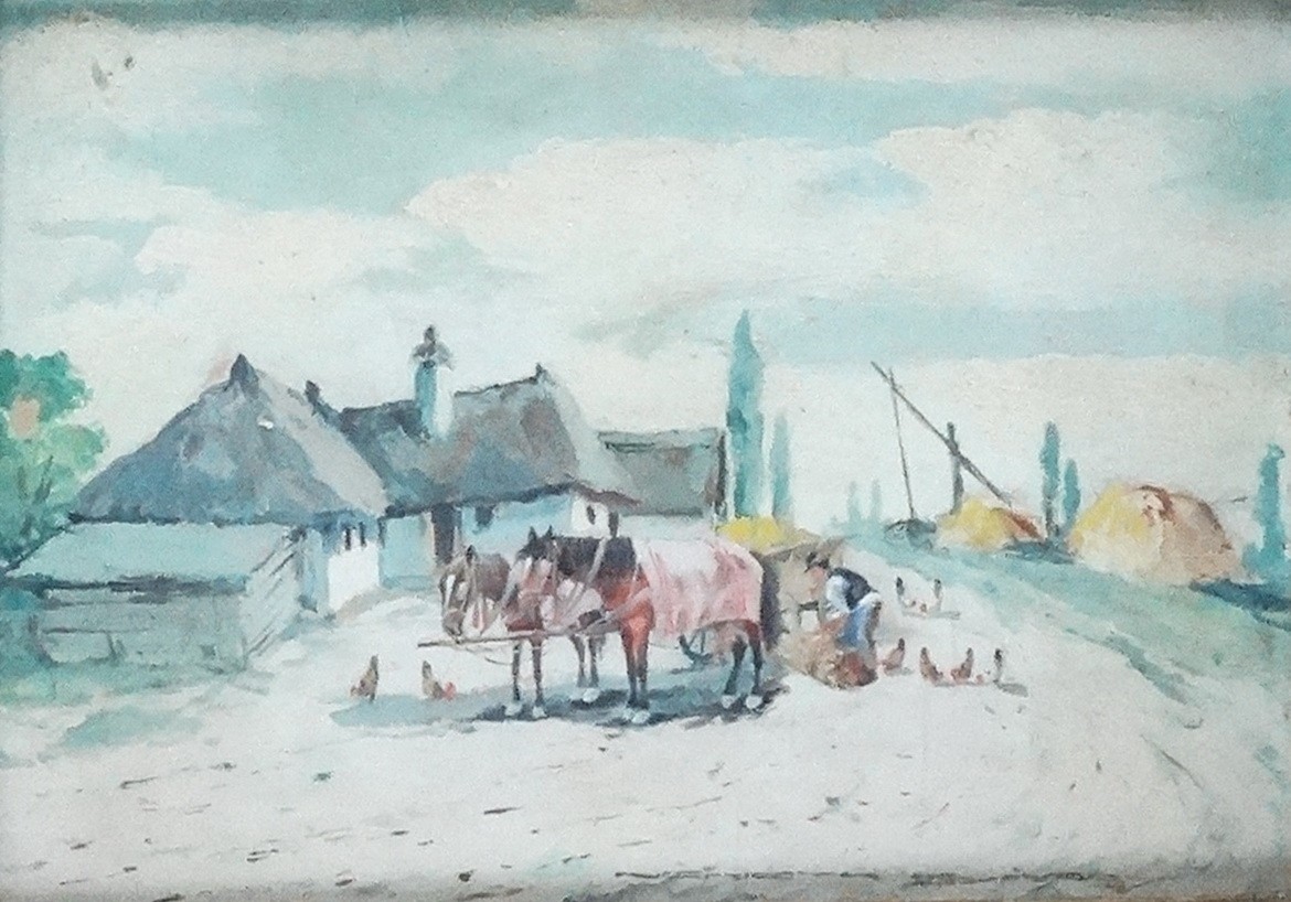 Németh György (1888 – 1962): Lovas szekér falusi utcán, gémeskúttal