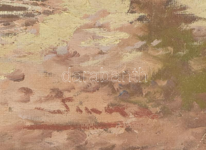 Olvashatatlan jelzéssel: Faluvége. Olaj, vászon. Javított. Dekoratív, kissé sérült fakeretben. 62×95 cm. KIZÁRÓLAG SZEMÉLYES ÁTVÉTEL, NEM POSTÁZZUK! / ONLY PERSONAL COLLECTION AT OUR OFFICE!