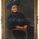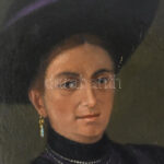 Olvashatatlan jelzéssel (jobbra fent), XX. sz. eleje: Kalapos hölgy portréja. Olaj, vászon. Javított. Kissé sérült. Dekoratív, kissé sérült fakeretben. 100×75 cm. KIZÁRÓLAG SZEMÉLYES ÁTVÉTEL, NEM POSTÁZZUK! / ONLY PERSONAL