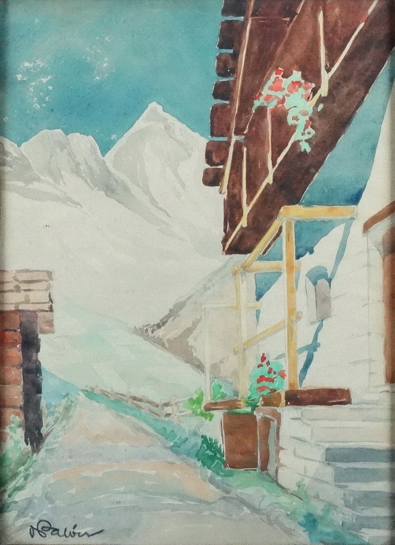 Olvashatatlan szignó: Hegyi táj utcával, házzal