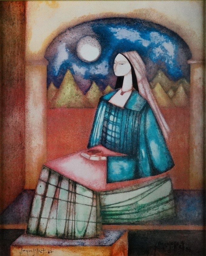 papír, litográfia, szita, jjl, keretben, 100 x 70
