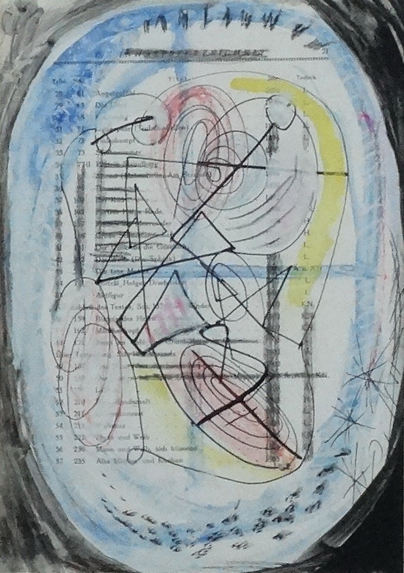 papír, vegyestechnika., jn., keretben, 24 x 17 cm