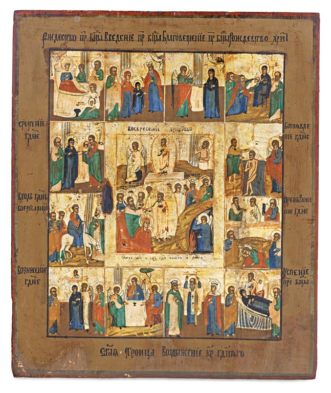 Orosz ikonfestő, 19. sz.: Krisztus pokolraszállása és feltámadása ünnepekkel