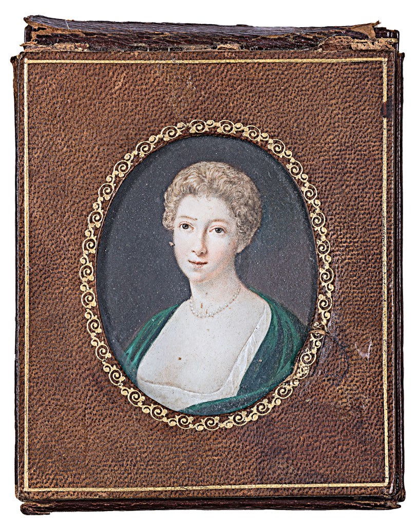 tempera, karton, 70*60 mm, j.n., eredeti bőr tokjában