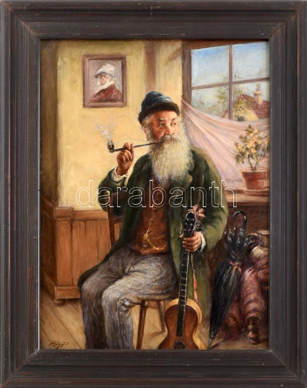 Pap jelzéssel: Pipázó. Olaj, fa, fakeretben, 40×30 cm<a href="https://www.darabanth.com/hu/gyorsarveres/436/kategoriak~Festmenyek-es-grafikak/Festmenyek-es-grafikak-jelzessel-jelzes-nelkul~500002/Pap-jelzessel-Pipazo-Olaj-fa-fakeretben-40×30-cm~II28