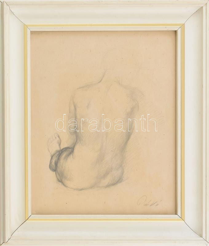 Patkó jelzéssel: Hátakt. Ceruza, papír. Üvegezett fakeretben. 25×20 cm<a href="https://www.darabanth.com/hu/gyorsarveres/428/kategoriak~Festmenyek-es-grafikak/Festmenyek-es-grafikak-jelzessel-jelzes-nelkul~500002/Patko-jelzessel-Hatakt-Ceruza-papir-