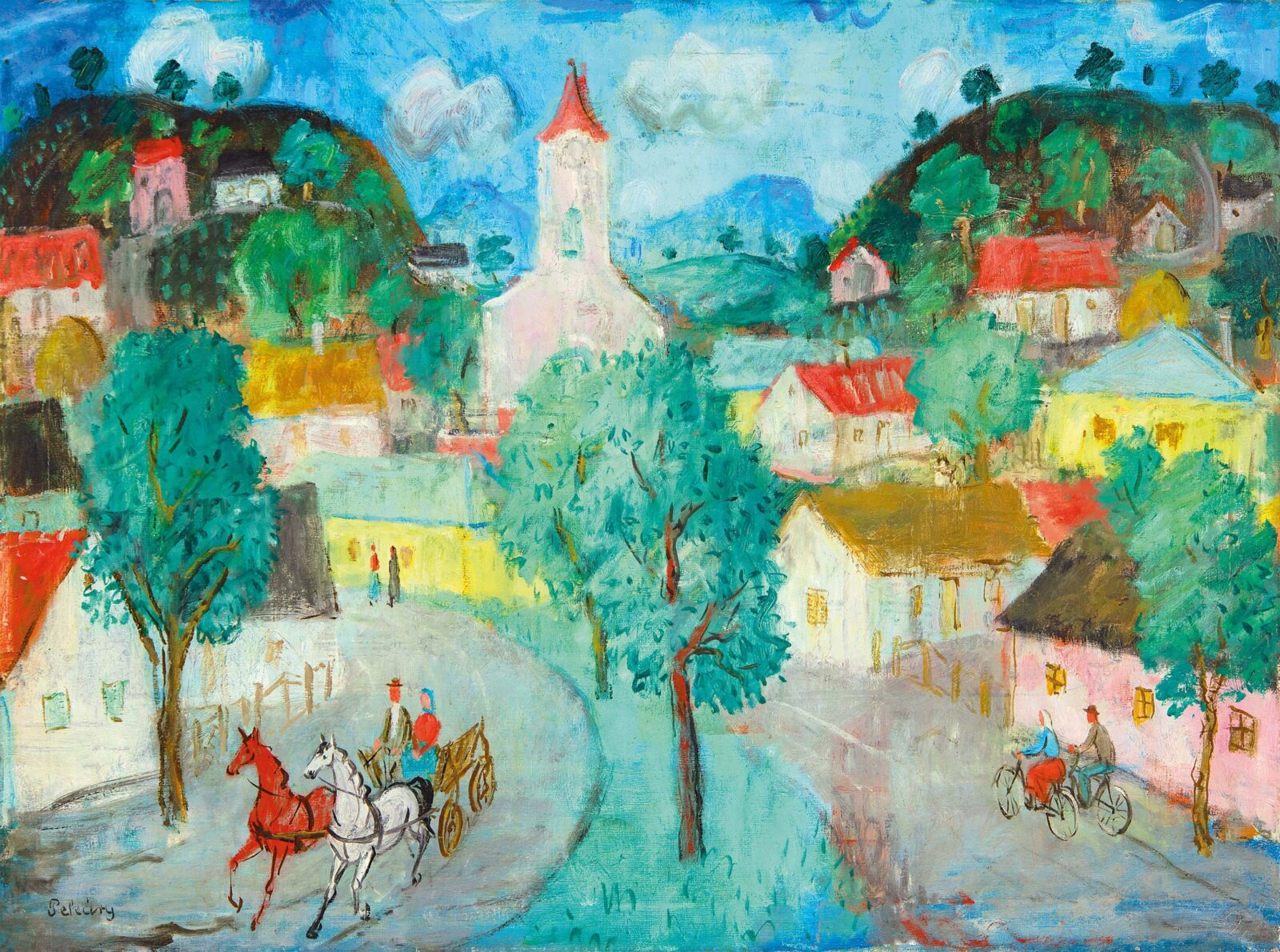 Pekáry István (1905-1981): Kisvárosi délután (Falu), 1960-as évek
