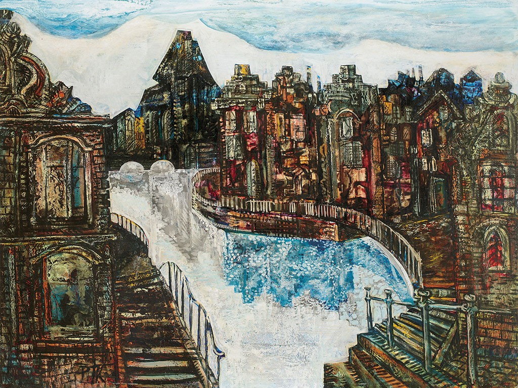 Olaj, farost, 66×88 cm, Jelezve balra lent: PTK, Jelezve hátoldalon: Péli Tamás