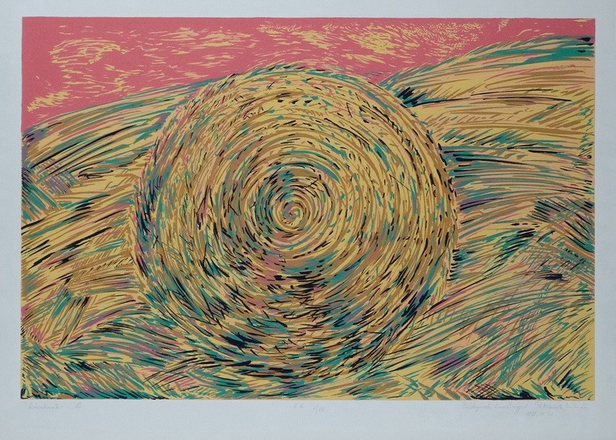 papír, litográfia, szita, jjl, keretben, 100 x 70