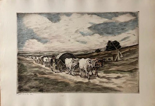 Prihoda István (1891-1956) Prihoda István (1891-1956): Szekérsor. Színezett rézkarc. J.b.l.