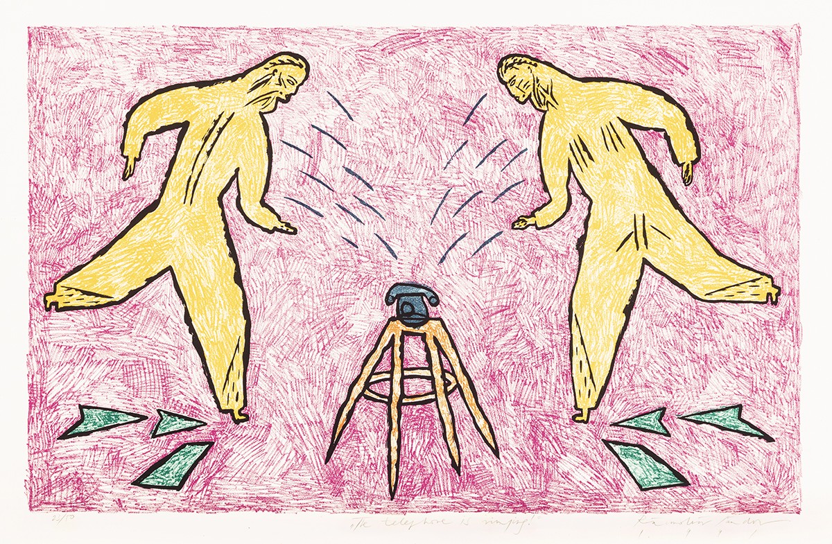 Rácmolnár Sándor (Miskolc, 1960) „The telephone is …”, 1991 Szerigáfia, papír 600 × 890 mm Jelezve balra lent: 23/50 Jelezve jobbra lent: Rácmolnár Sándor 1991