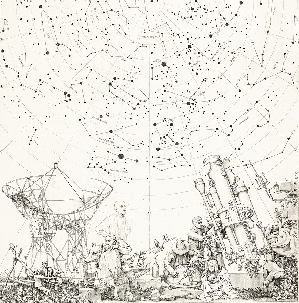 Rékassy Csaba (Budapest, 1937 – Budapest, 1989) Égbolt II., 29/100 Rézmetszet, papír 295 X 295 mm Jelezve jobbra lent: Rékassy Cs. Jelezve balra középen: Égbolt II.