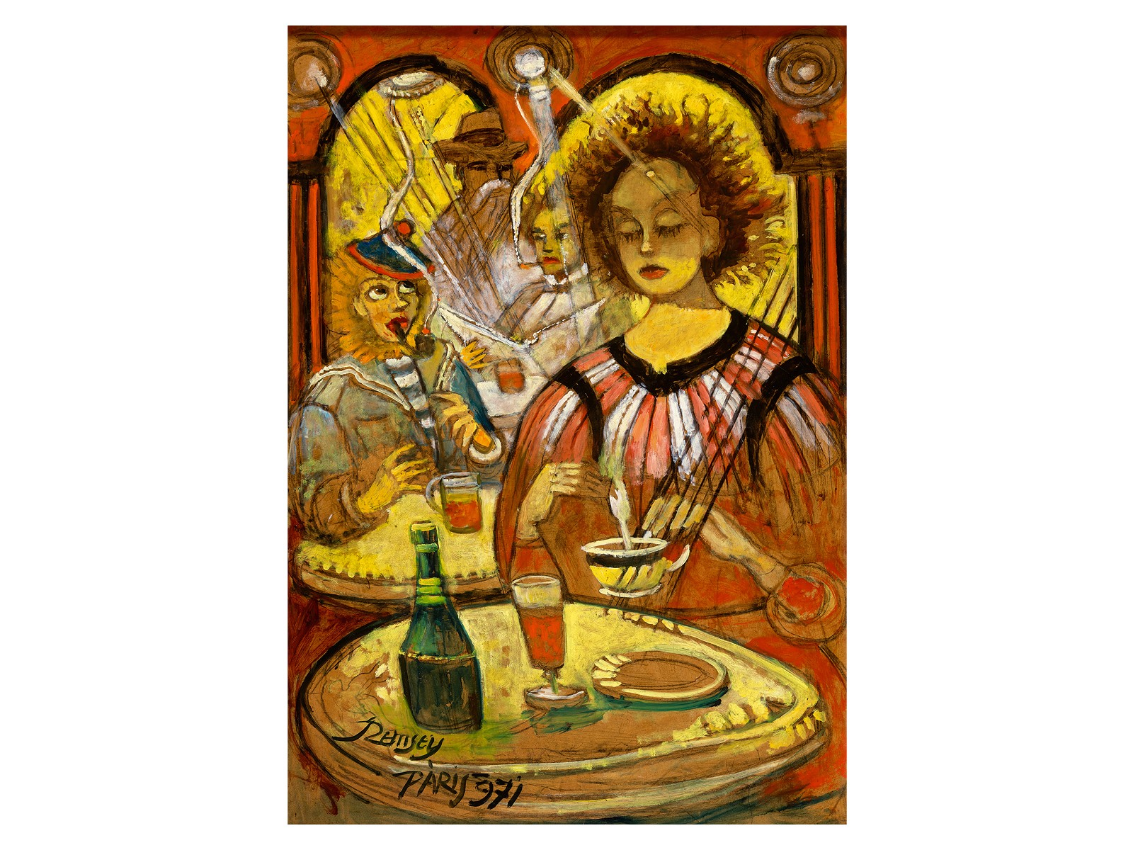 Remsey Jenő (Nagykőrös, 1885 – Gödöllő, 1980) Csodálkozás, 1971 Olaj, farost 100 × 70 cm Jelezve balra lent: Remsey Párizs 971 Kiállítva: Remsey párizsi képei. Szeged, Képcsarnok Vállalat, 1978, kat. szám: 16.