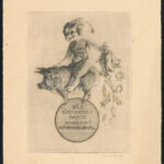 Révész Kornél (1885-1944): ‘365 szerencsés napot kívánok!’ (Újévi üdvözlet, 1937). Rézkarc, papír, jelzett, hátoldalán pecséttel, 13×9,5 cm<a href="https://www.darabanth.com/hu/gyorsarveres/435/kategoriak~Festmenyek-es-grafikak/Ex-libris-es-kisgrafi
