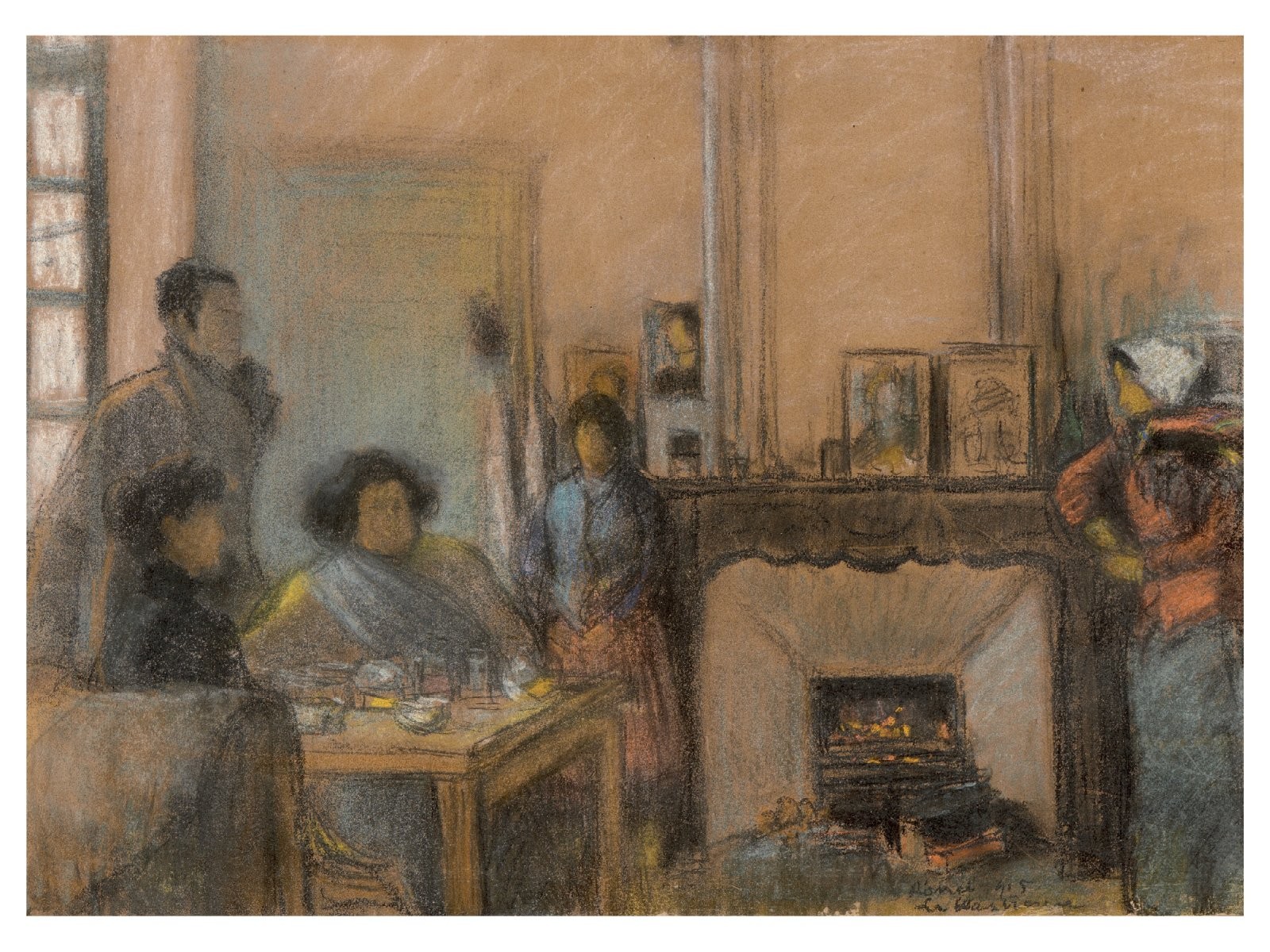 Rippl-Rónai József (Kaposvár, 1861 – Kaposvár, 1927) Összejövetel chartreusei szobámban Pasztell, papír 52 X 74 cm Jelezve jobbra lent: Rónai 1915 La Chartreuse