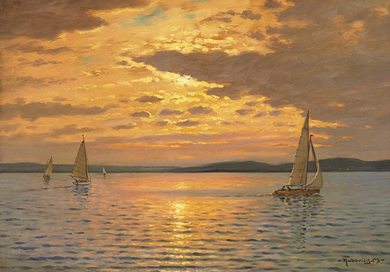 Rubovics Márk: Vitorlások a naplementében (Balaton)