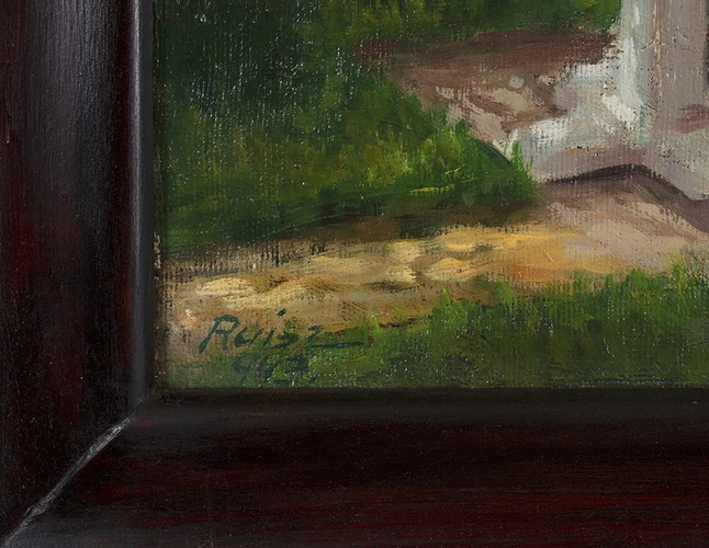 Ruisz György: Családi délután, 1943, olaj, vászon, 51 x 65 cm, Jelezve balra lent: Ruisz 943