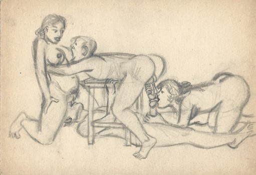 Ruszkay György (1924-1998) Ruszkay György (1924-1998): Orgia. Erotikus jelenet. 1. Ceruza, papír. Jelzés nélkül.