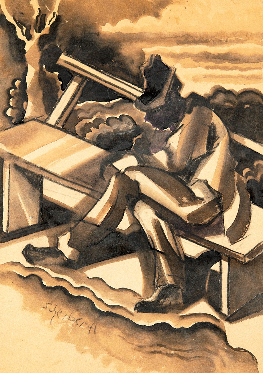 Akvarell, szén, tus, papír, 35 x 25 cm, Jelezve balra lent: Scheiber H