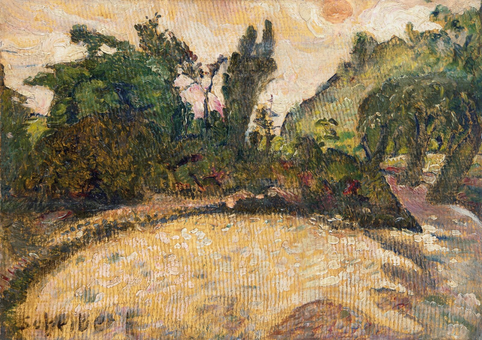 Olaj, karton, 33,5 x 44 cm, Jelezve jobbra lent: Pór. N- Saal 1906