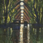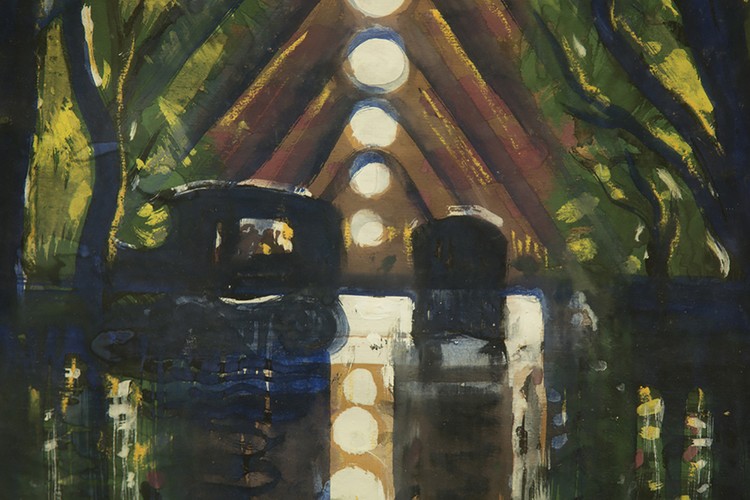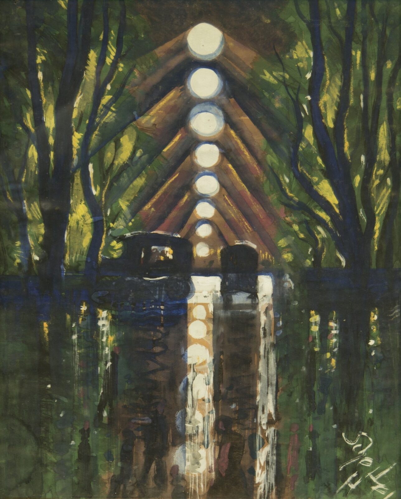 Scheiber Hugó: Esti boulvard autómobilokkal vegyes technika, papír 57 x 45 cm Jelezve jobbra lent: Scheiber H