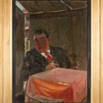 Scheiber Hugó: Férfiportré (vendéglőben), 1920-as évek olaj, papírlemez 70 x 49 cm Jelezve jobbra középen: Scheiber H.
