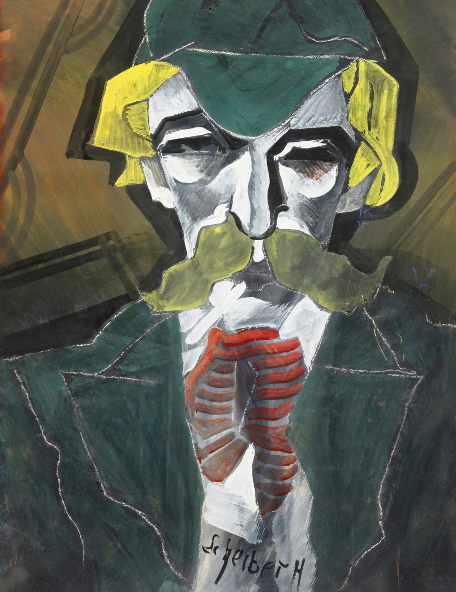 Scheiber Hugó:Férfi piros csíkos sállal