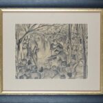 papír, akvarell, jjl, keretben, 30 x 43.5