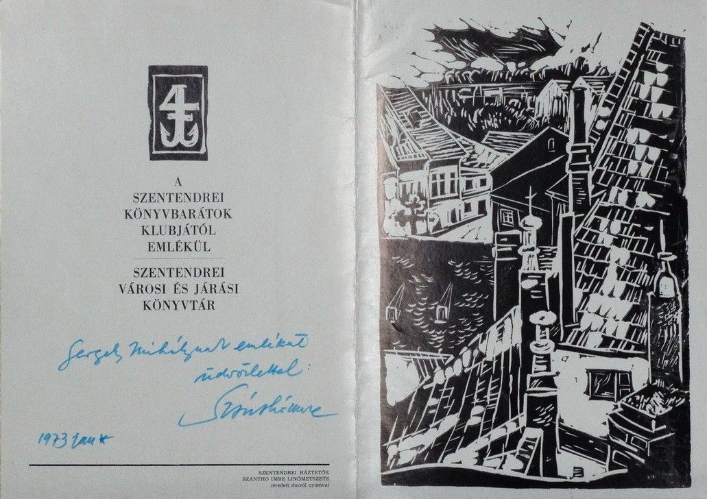 Szánthó Imre (1925-1998): Szentendrei háztetők, 1973 – ajánlással