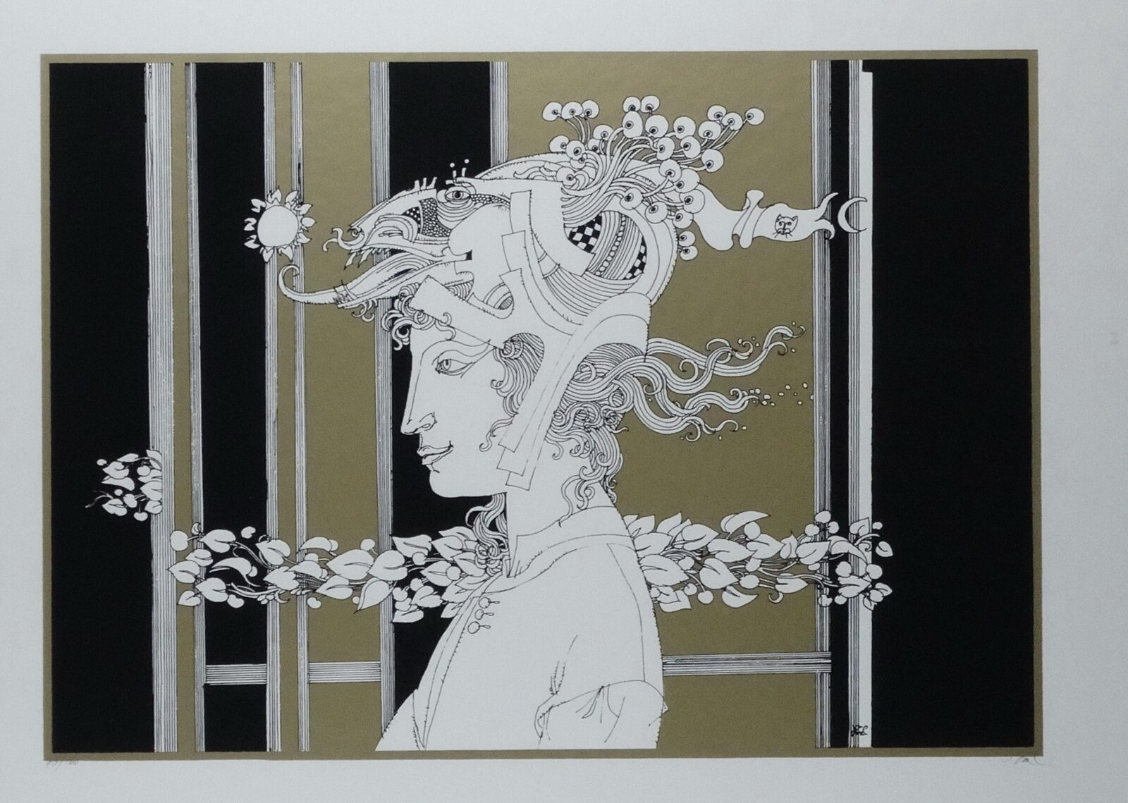 papír, litográfia, szita, jjl, keretben, 100 x 70