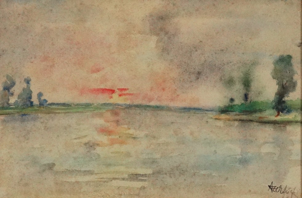 papír, akvarell, jjl, keretben, 30 x 43.5