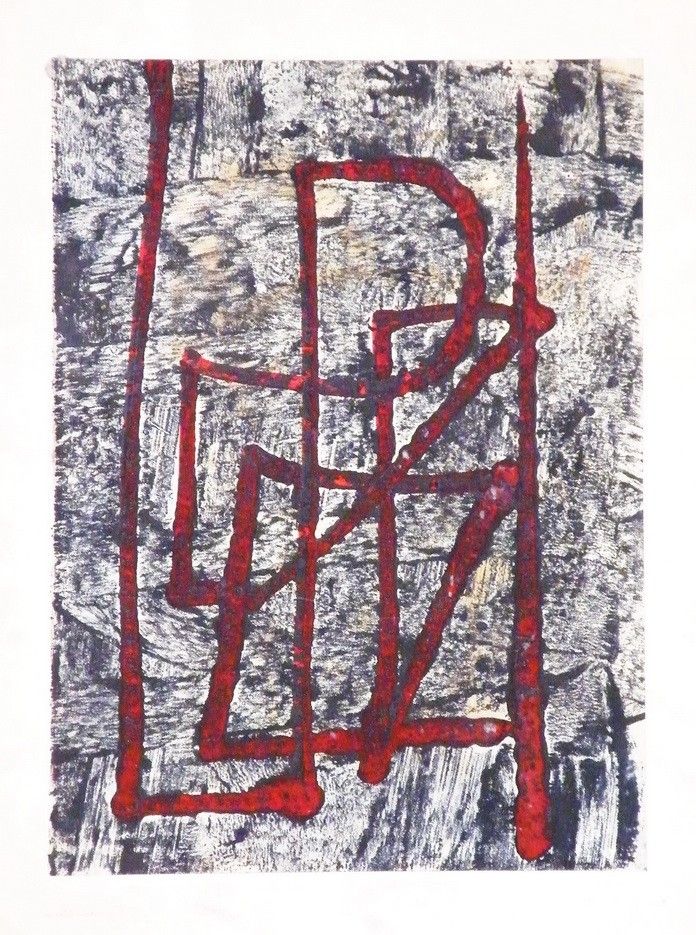 papír, litográfia, szita, jjl, keretben, 100 x 70