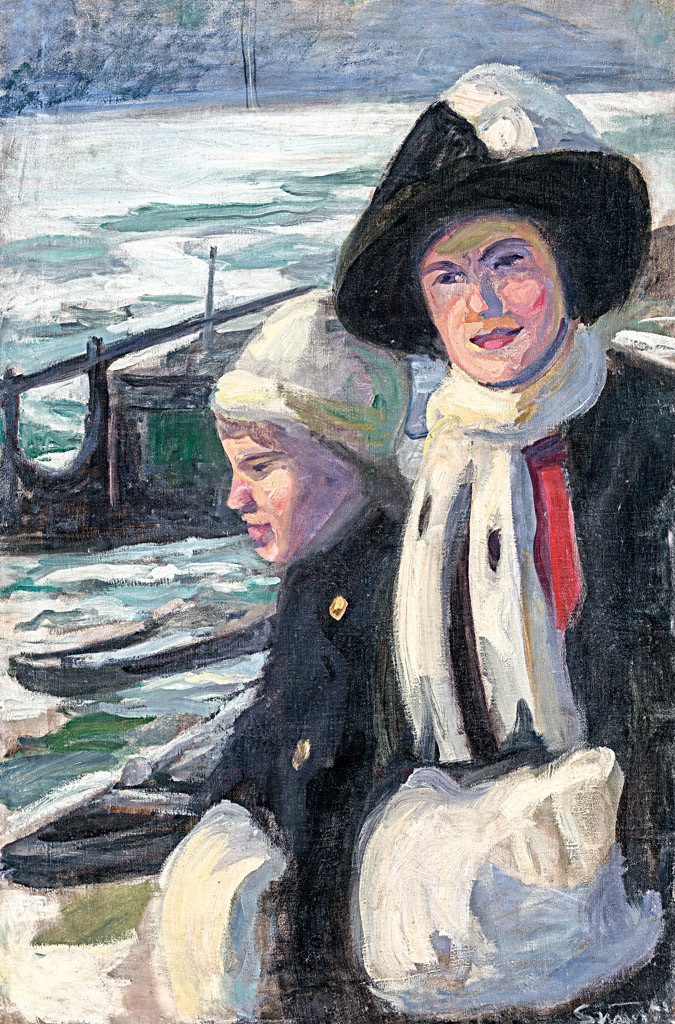 Színes Elemér (1886-?): Sétálók a téli Duna-parton, 1911