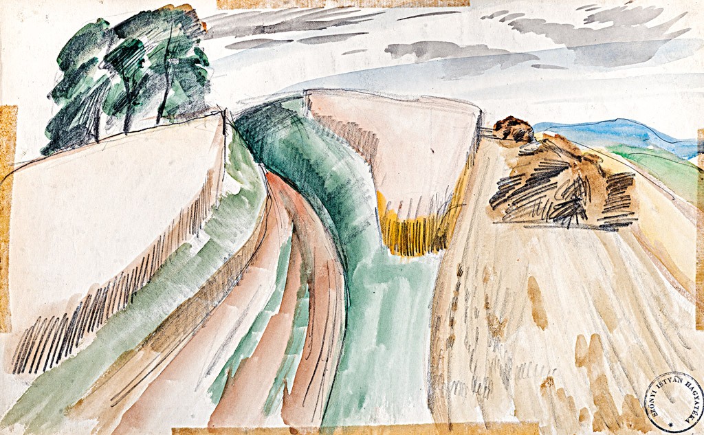 akvarell, ceruza, papír, 220*340 mm, j.n., j.l.: Szőnyi István hagyatéki bélyegzővel, sérült
