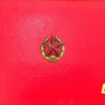 Több nyelvű propaganda füzet zománc vöröscsillaggal (egyedi). Három alkotóval (Vertel József, Gönczi Béla, Veszprémi Endre). 13 db rézkarc, papír, mindegyik jelezve, 8×13 cm (13×)