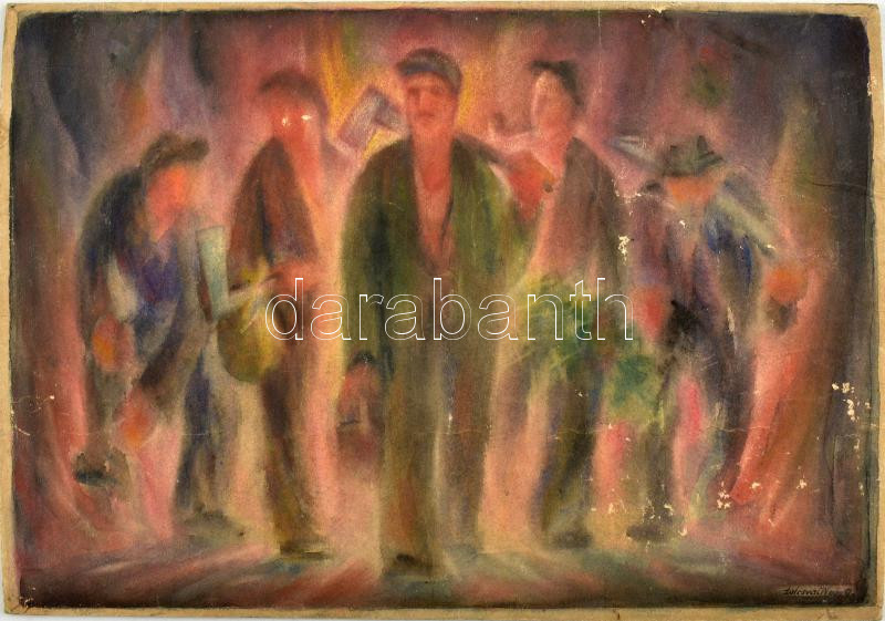 tolcsvai Nagy jelzéssel: Munkások (szocreál mű). Akvarell, karton. Kis felületi sérülésekkel, a karton hátoldalán ázásnyomokkal, 28,5×40,5 cm<a href="https://www.darabanth.com/hu/gyorsarveres/431/kategoriak~Festmenyek-es-grafikak/Festmenyek-es-grafi