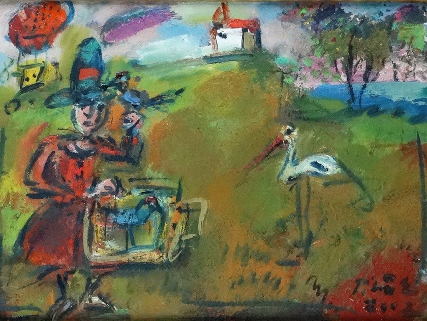 Tóth Ernő (1949): Tájkép gólyával 2002