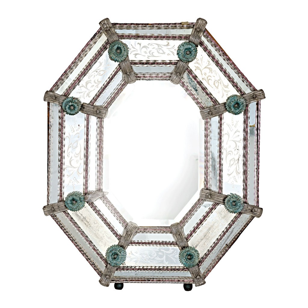 Murano, 19. sz., színtelen és kék üveg, köszörült díszítéssel, sérült, 85*71 cm