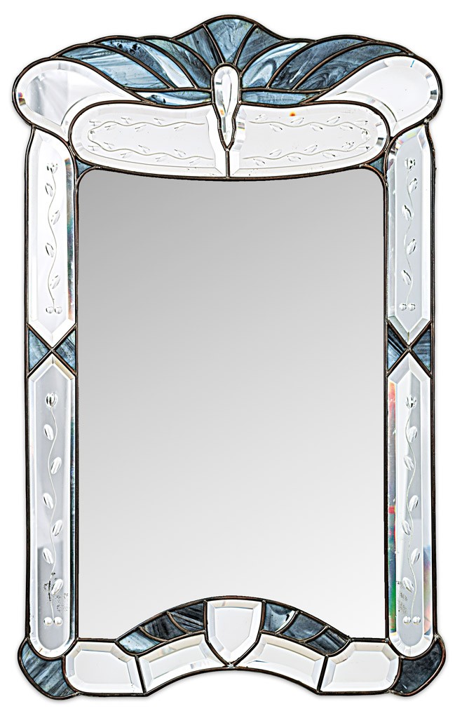 Velence vagy Murano, 20. sz. eleje, fa korpuszon csiszolt, színtelen üveg és színes üvegpaszta díszítéssel, 100*62 cm