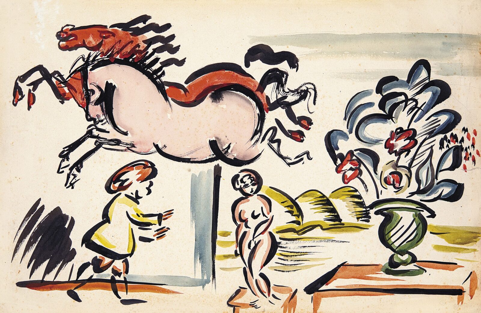 Akvarell, tus, papír , 32 x 48,5 cm, Jelzés nélkül