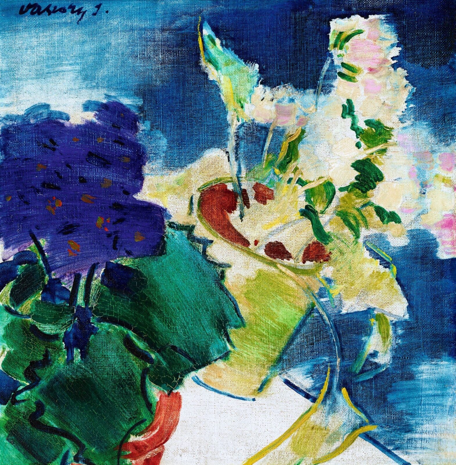 Vaszary János:Azálea és ibolya kék háttérrel